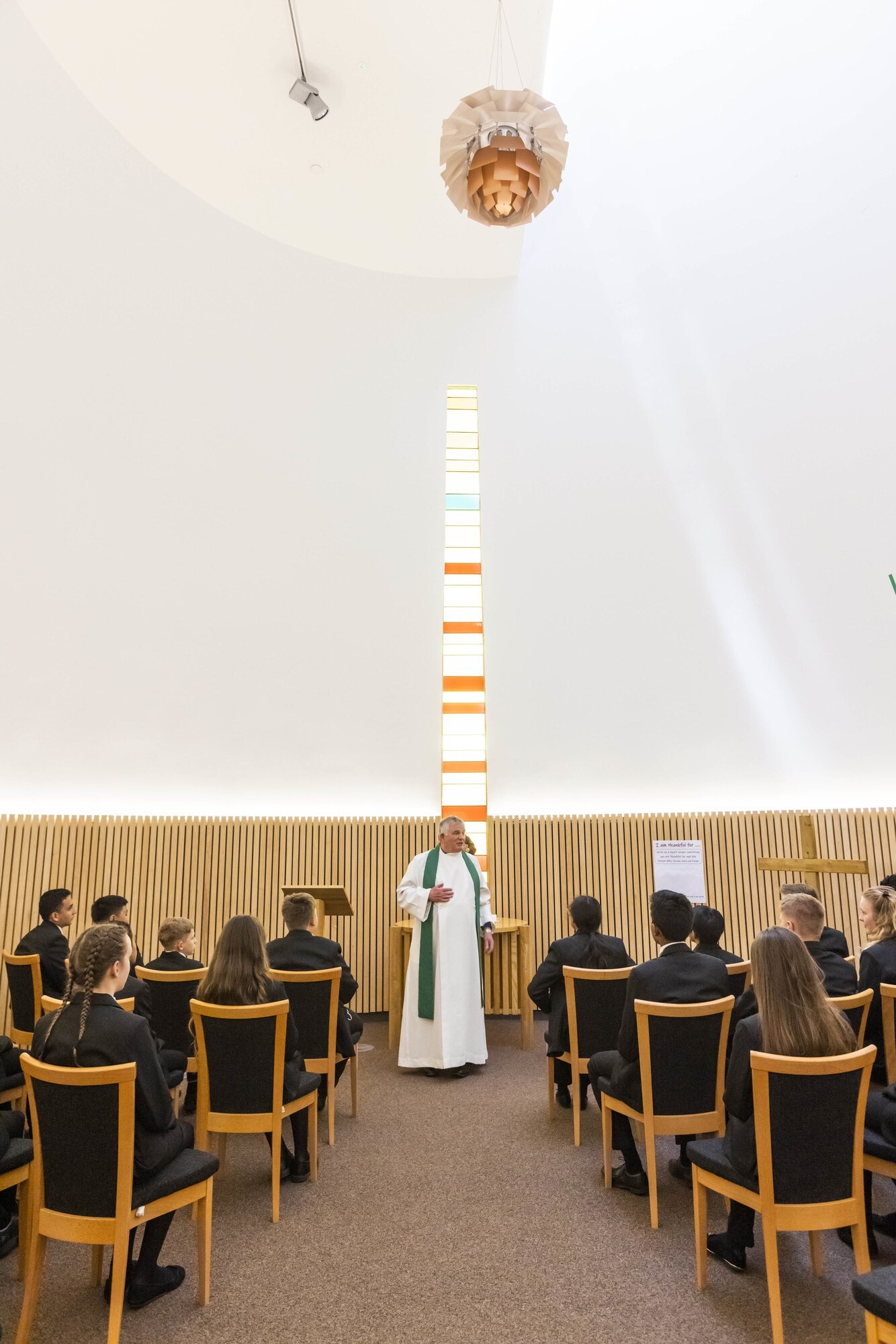 The Chapel is situated at the heart of the Academy. It stands proud with its unique design and architecture as a place to host regular services and collective worship, whilst also providing a safe and peaceful space for spiritual reflection, quiet time and prayer. It is also used for Catholic Mass and Anglican Eucharist throughout the year. The Chapel is open to everyone regardless of beliefs or religion.