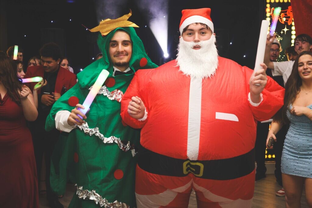 The night began with a delicious Christmas dinner, complete with all the traditional trimmings. After dinner, the party truly came to life. The DJ kept the dance floor full throughout the night, playing a mix of classic Christmas hits and student favourites. We even had a special appearance from Father Christmas and a walking Christmas Tree!